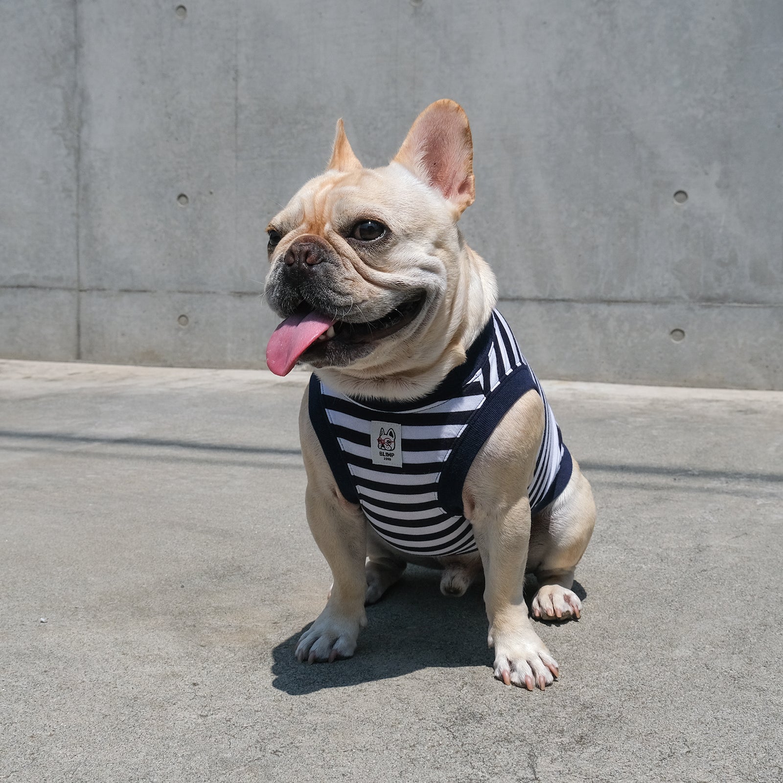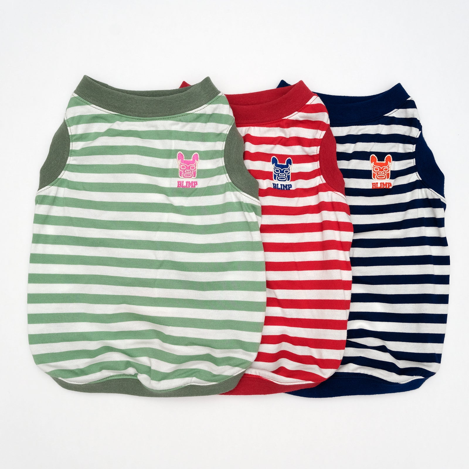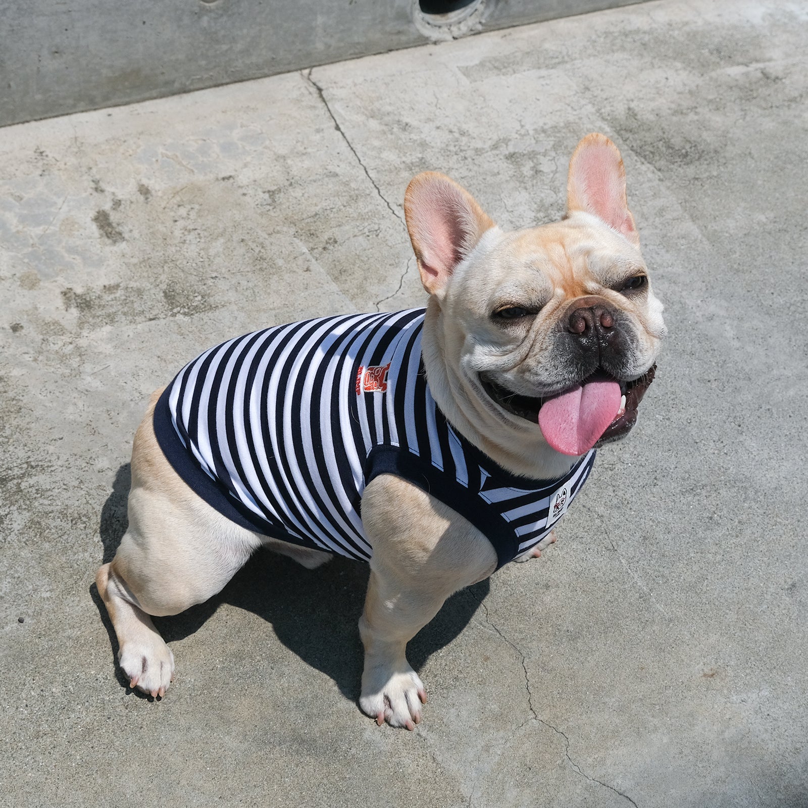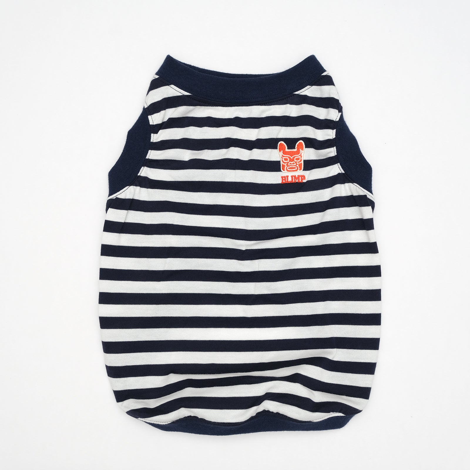 手摘みのエジプト超長綿の白さと繊維の強さ、コットンながらも上質な光沢感や柔らかい風合いが着心地の良いボーダータンクトップです。ブヒレスラーのワンポイント刺繍がおちゃめです。素材 コットン100%モデルフォーン:首周り 43cm / 胴周り 57cm / 体重 11.2kg / FB-Lサイズ着用クリーム:首周り 40cm / 胴周り 56cm / 体重 10.6kg / FB-Lサイズ着用