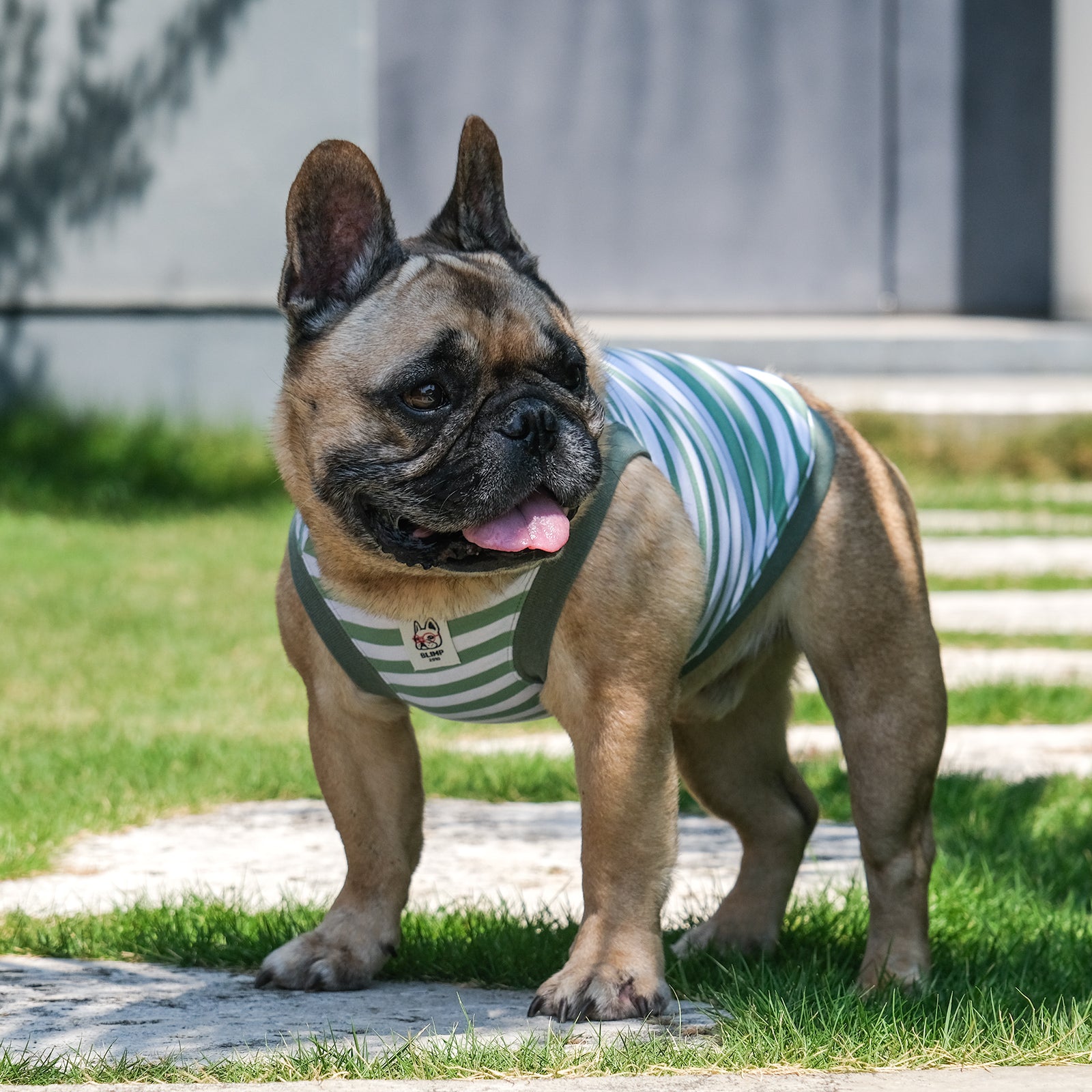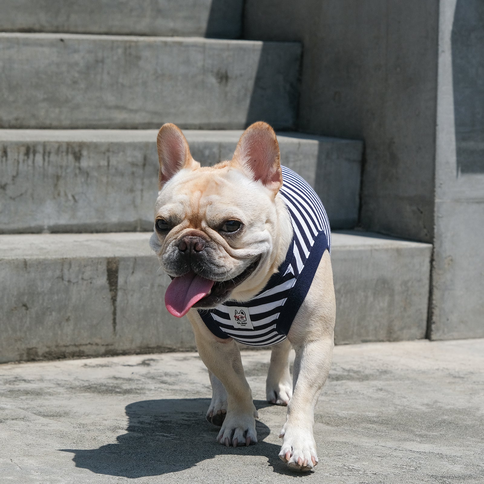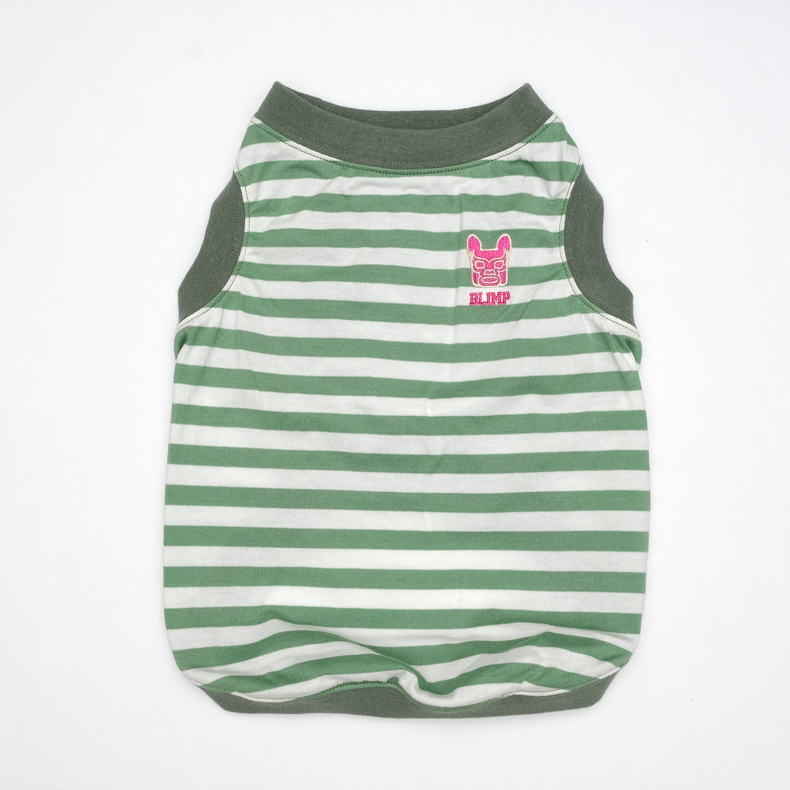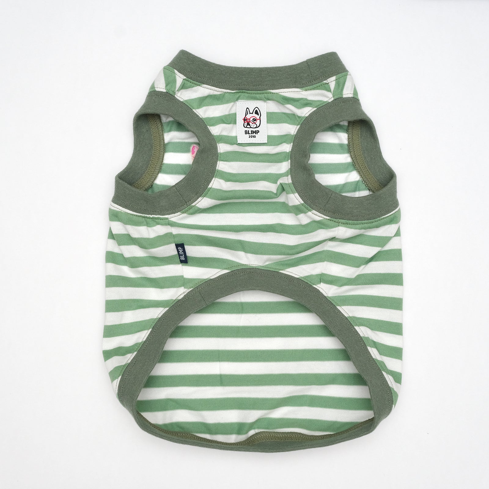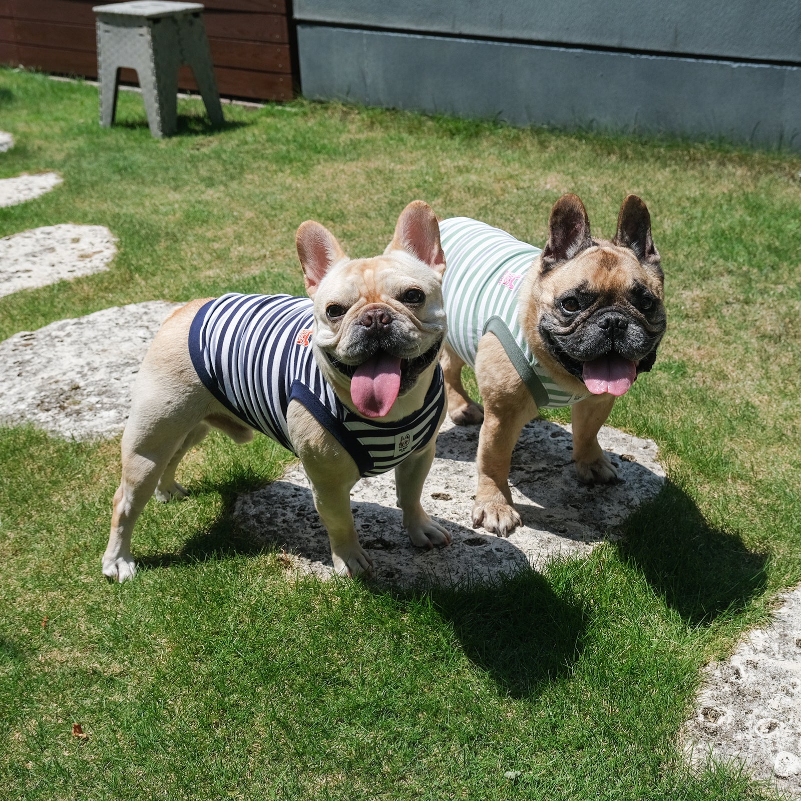 手摘みのエジプト超長綿の白さと繊維の強さ、コットンながらも上質な光沢感や柔らかい風合いが着心地の良いボーダータンクトップです。ブヒレスラーのワンポイント刺繍がおちゃめです。素材 コットン100%モデルフォーン:首周り 43cm / 胴周り 57cm / 体重 11.2kg / FB-Lサイズ着用クリーム:首周り 40cm / 胴周り 56cm / 体重 10.6kg / FB-Lサイズ着用