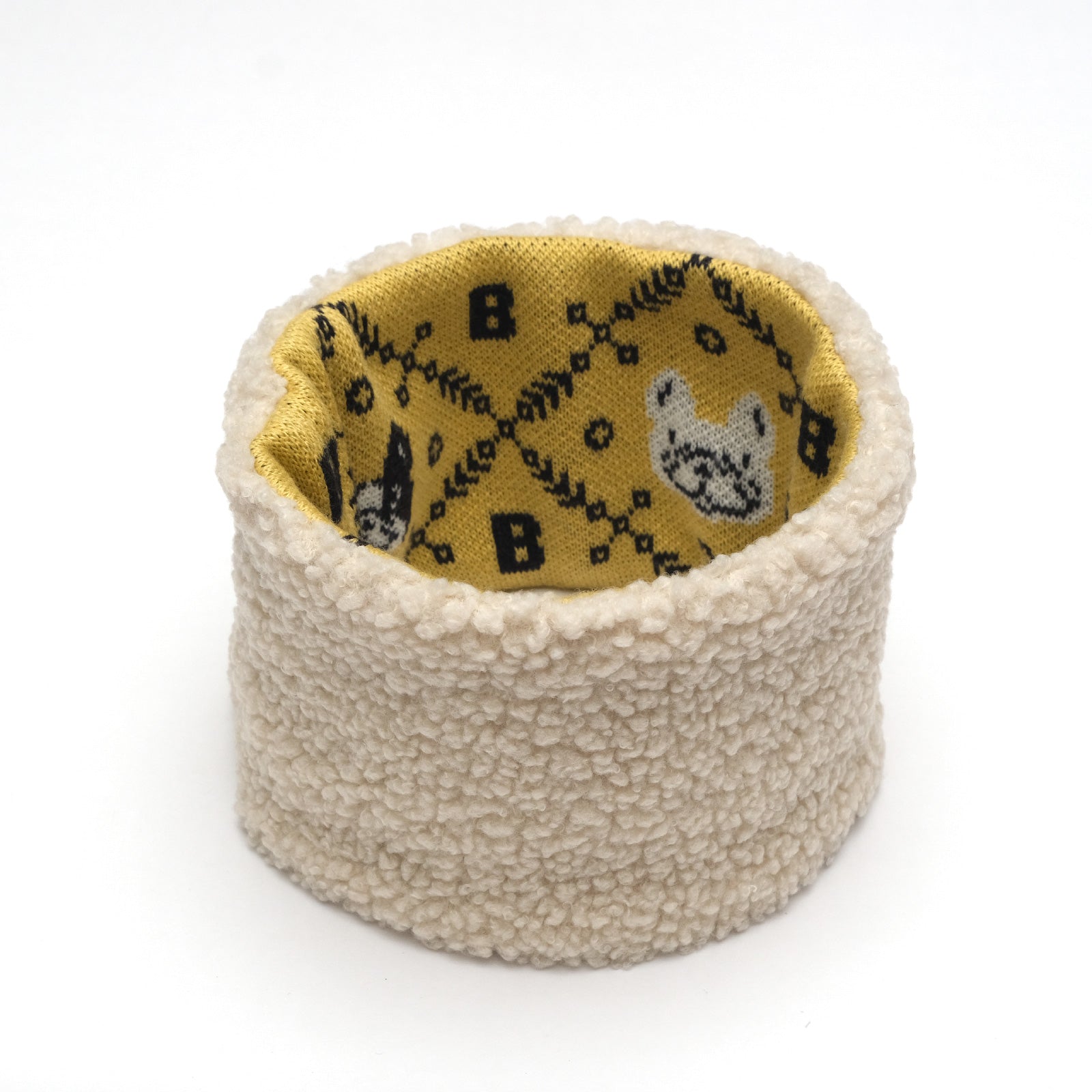 ノルディック模様に4種のブヒ柄を合わせたBLIMPオリジナルネックウォーマーです。内側は見た目も可愛らしく、ふっくらと柔らかいプードルファーのリバーシブル仕様になっています。お洋服に合わせてコーディネイトも楽しめます。ぱっと付けてぱっと外せるコンパクトな防寒アイテムはお散歩やお出かけの強い味方です。サイズ56はオーナーさんもオソロできます。