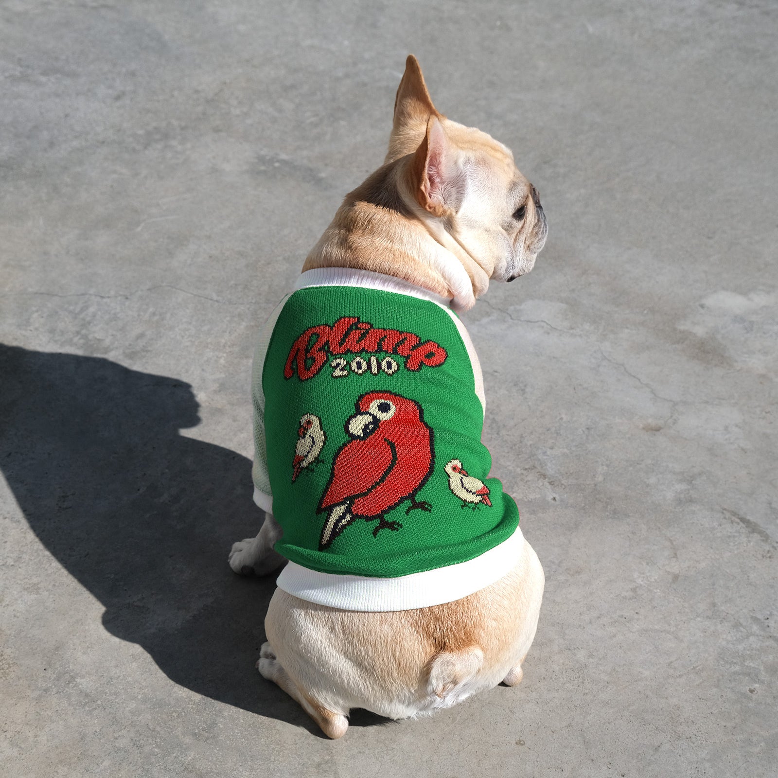 BLIMPオリジナルテキスタイルのセーター。BLIMPオリジナル編み図で織地生産から縫製までMADE IN JAPANのスペシャルな一枚です。カラフルインコをスカジャン風に仕上げました。このセーターでイケイケな雰囲気出せるのはブヒだけ。間違いなくみんなの視線を独り占めです。しっかりとした厚みがあり、寒い日も暖かく過ごせます。