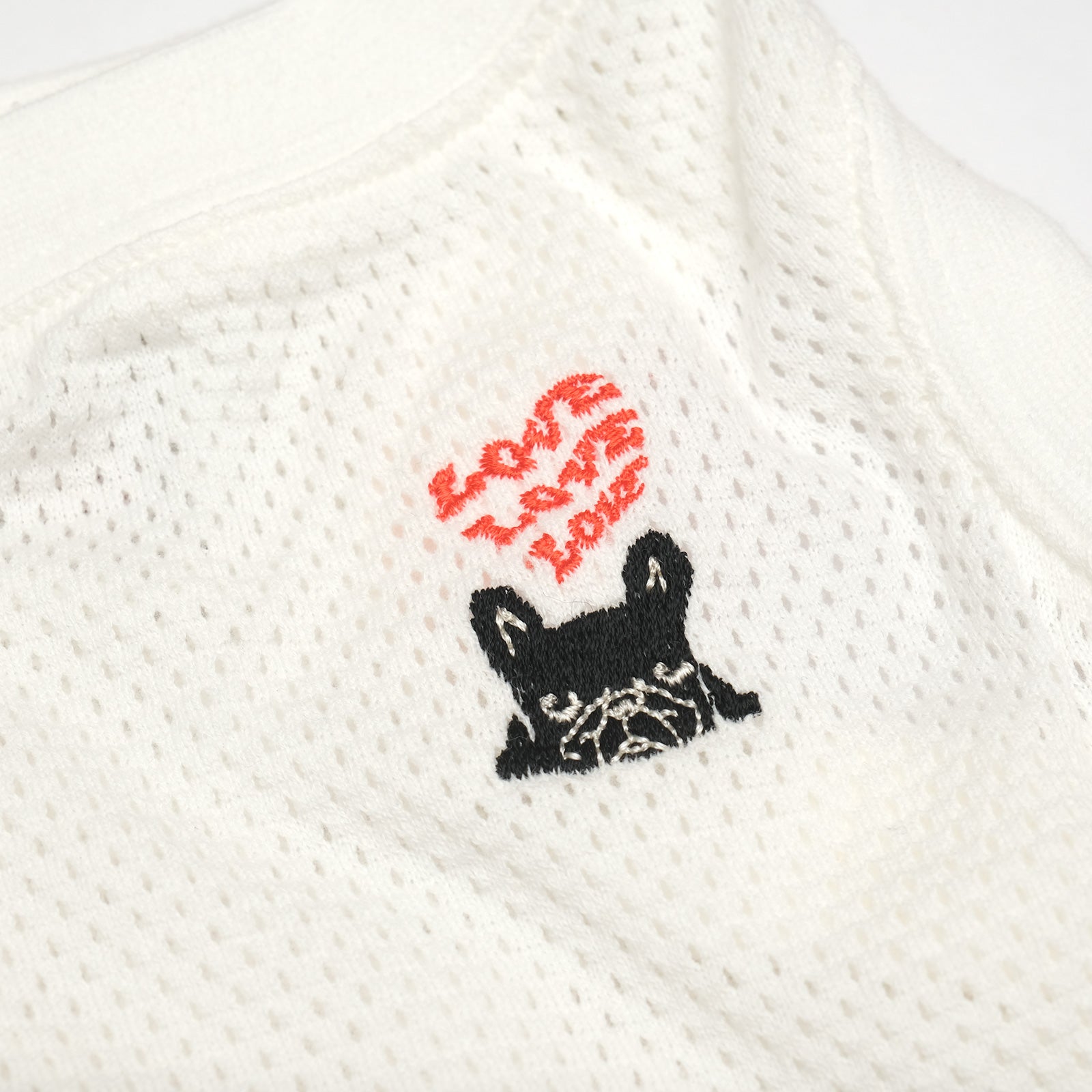This 100% cotton tank top is soft to the touch, breathable, and cool. It's sporty yet cute with a LOVE Pug embroidered accent. It's comfortable to wear even on hot days.