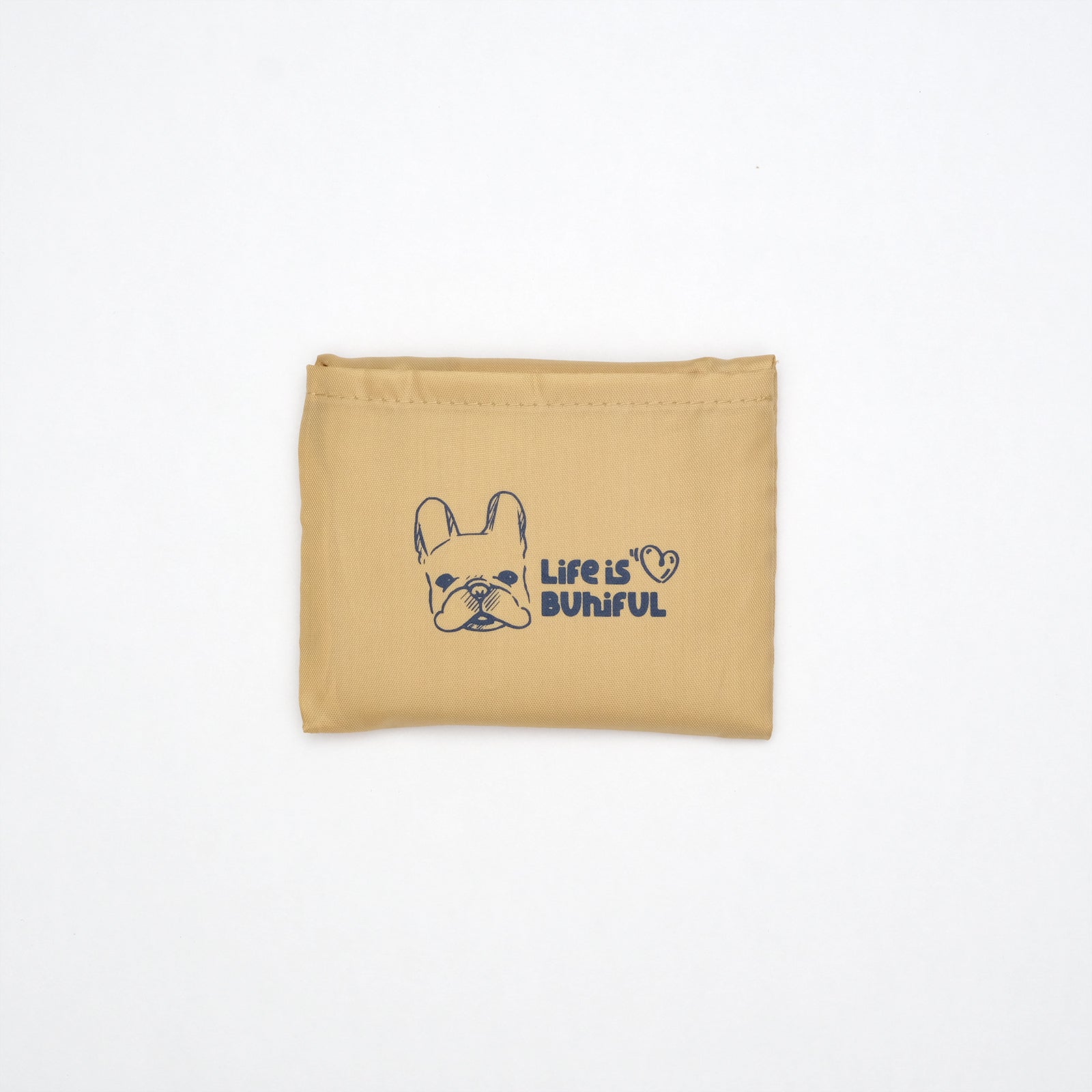 3R +Renewableに該当し、GRS認定工場のリサイクル生地を使用したエコバッグです。シンプルな手書きのブヒをプリントしました。