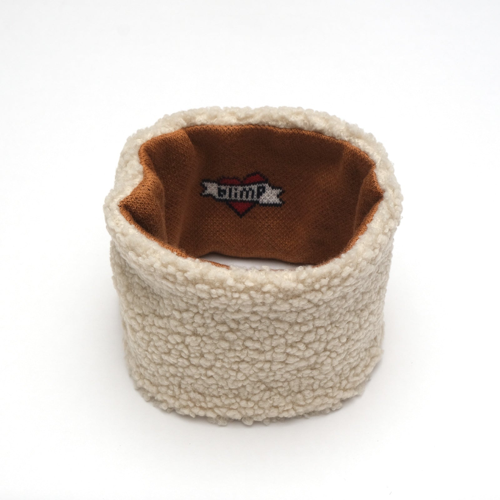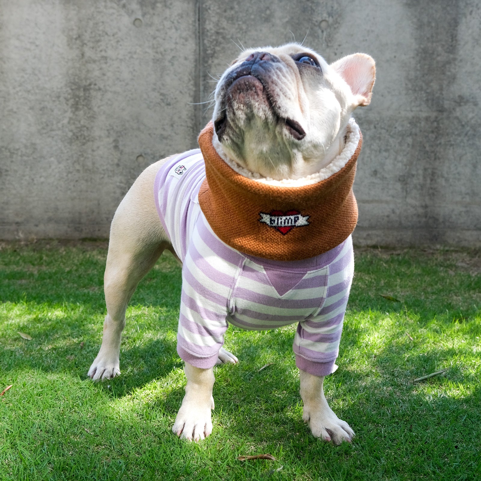 This original BLIMP neck warmer comes in four pug prints: brindle, cream, pied, and fawn. The interior is reversible and features soft, fluffy poodle fur for a charming look. Enjoy coordinating it with your outfit. This compact, easy-to-slip winter warmer is perfect for walks and outings. Size 56 can also be worn by the owner.