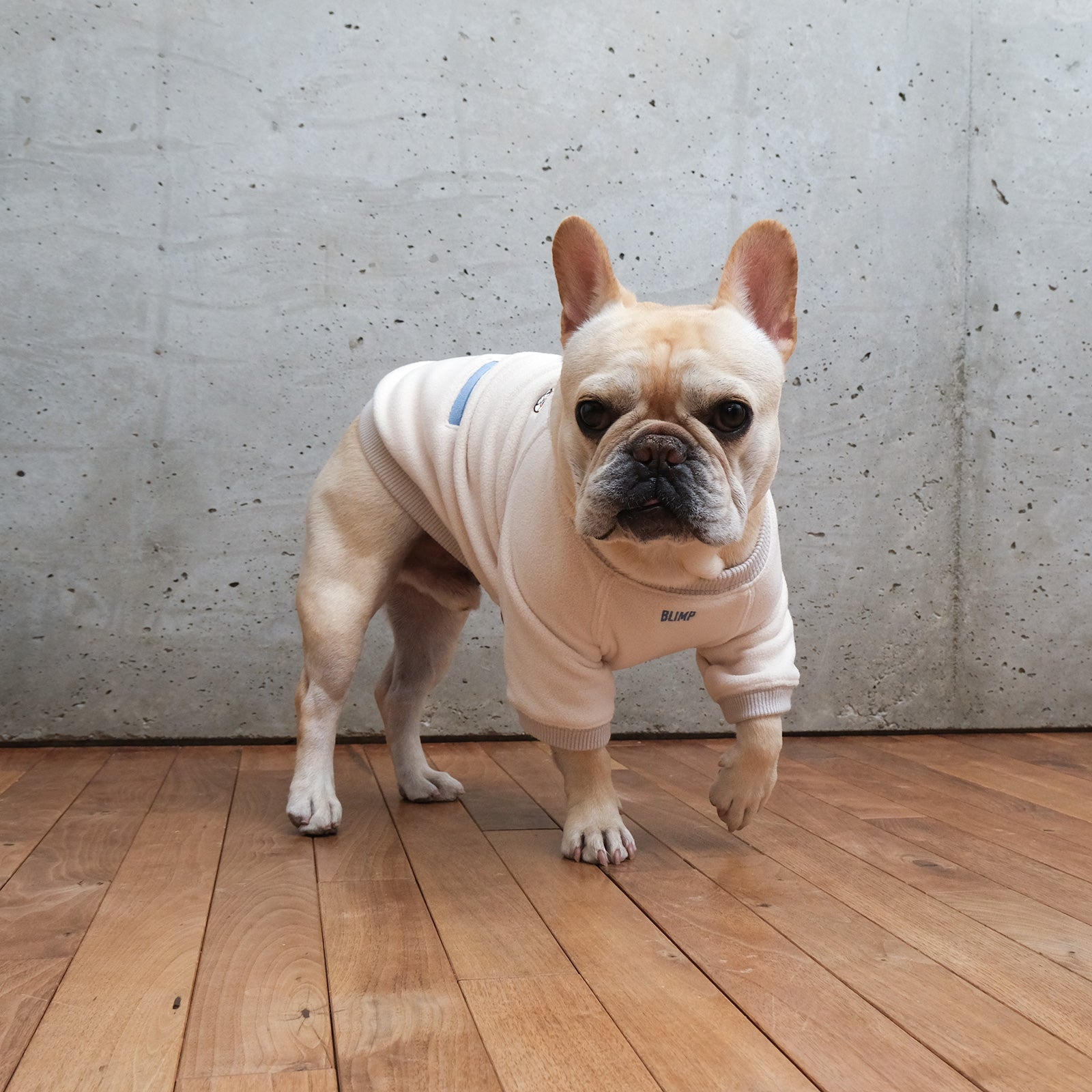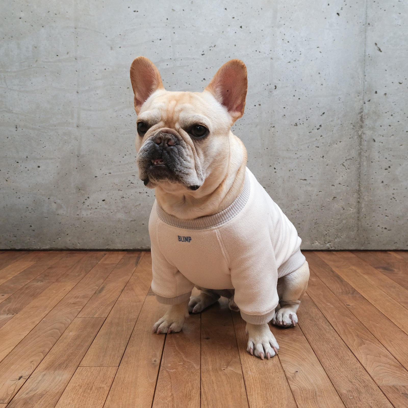 BLIMPの服はフレンチブルドッグ独特の体型にフィットするようにぴったりめで製作しています。ゆったりが好き、ぴったりが好きと好みはワンコそれぞれ。愛ブヒの一番着心地の良いサイズを選んでください。