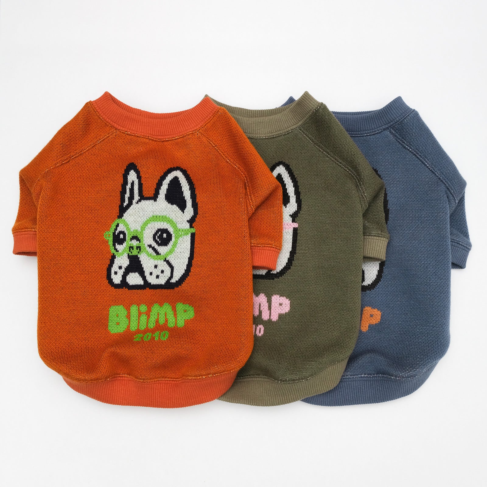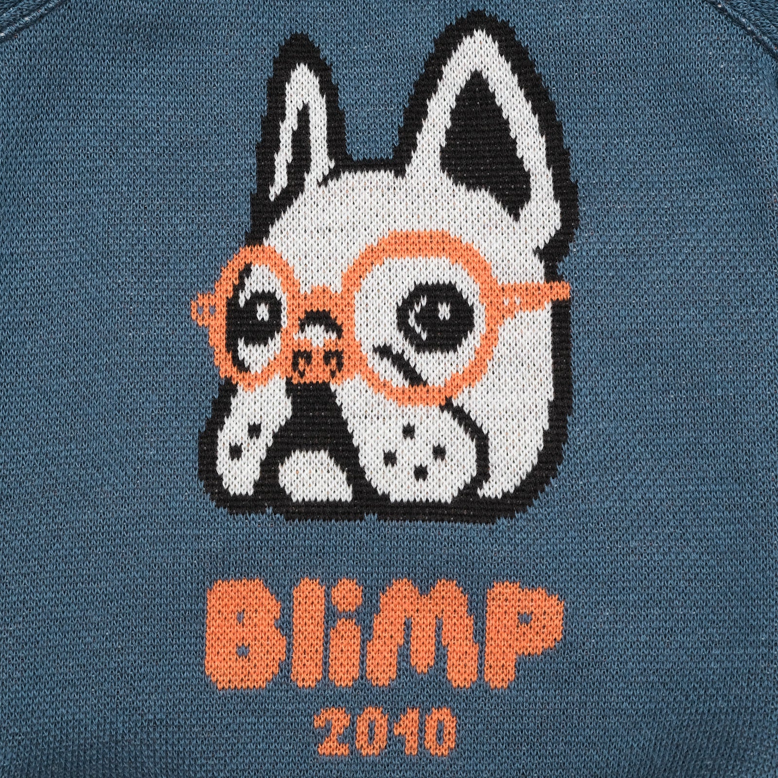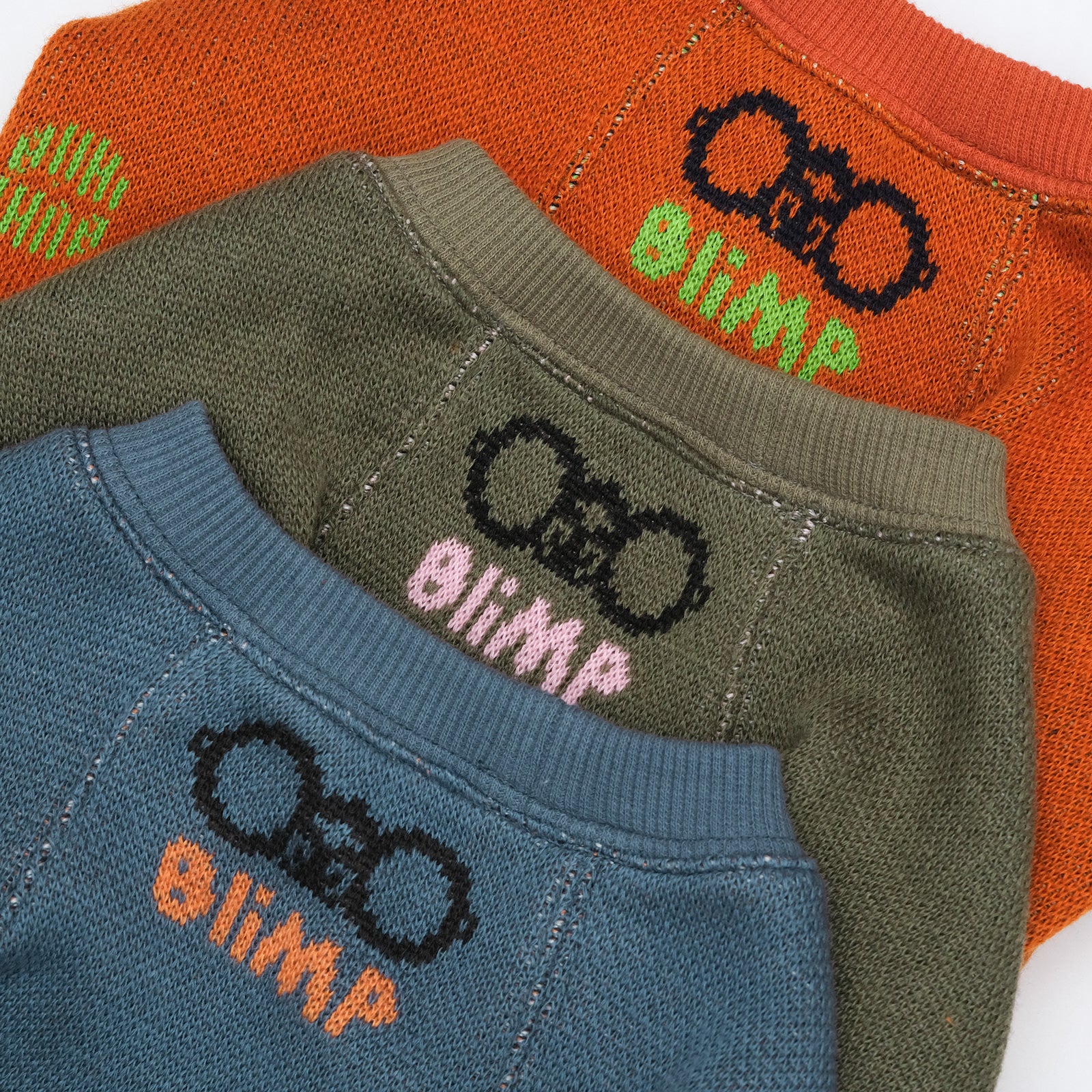 BLIMPオリジナルテキスタイルのセーター。BLIMPオリジナル編み図で織地生産から縫製までMADE IN JAPANのスペシャルな一枚です。BLIMPの人気アイコン、ブヒメガネをセーターにしました。前見頃にブヒメガネ、袖口にブヒロゴと全方位可愛いセーターです。しっかりとした厚みがあり、寒い日も暖かく過ごせます。