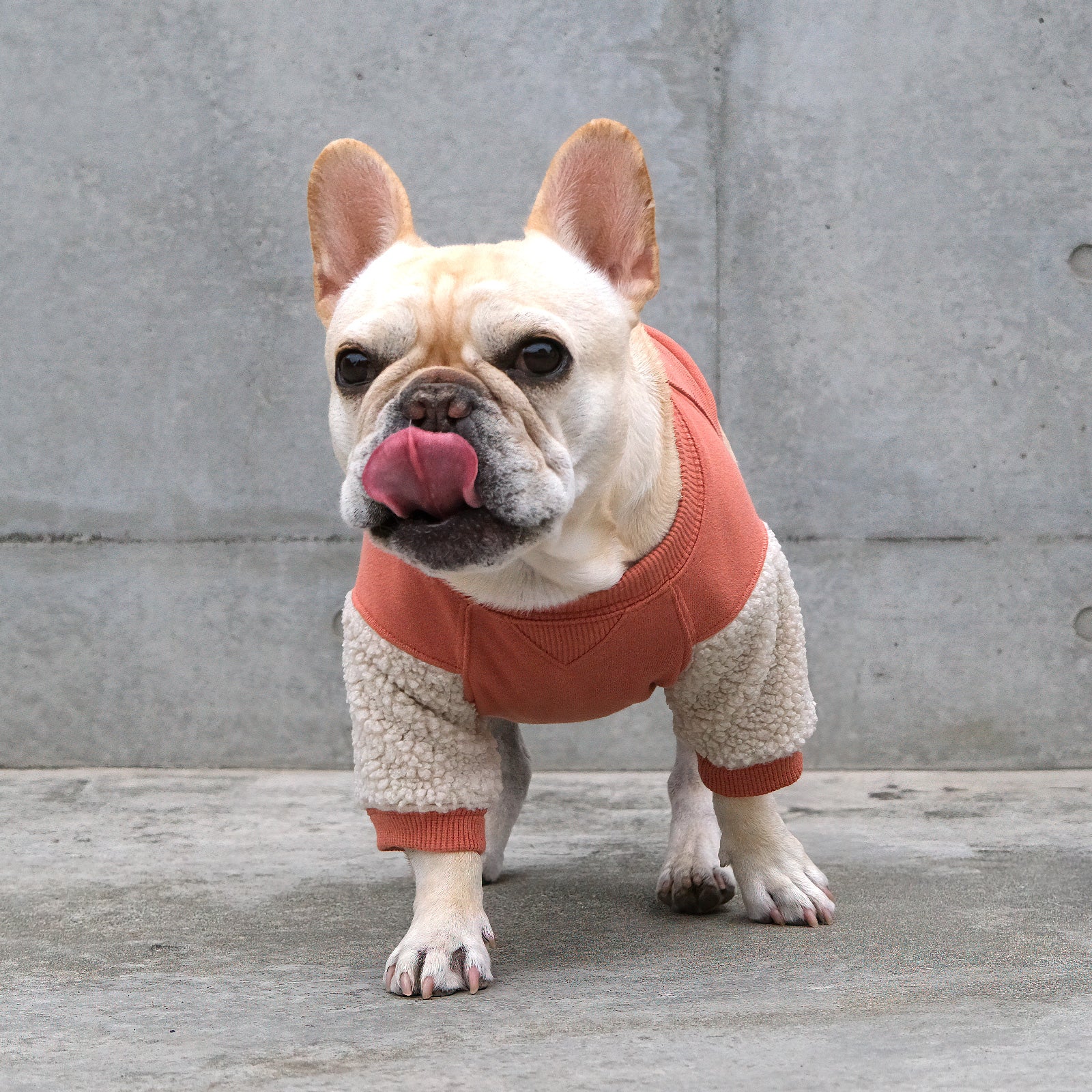 BLIMPの服はフレンチブルドッグ独特の体型にフィットするようにぴったりめで製作しています。ゆったりが好き、ぴったりが好きと好みはワンコそれぞれ。愛ブヒの一番着心地の良いサイズを選んでください。
