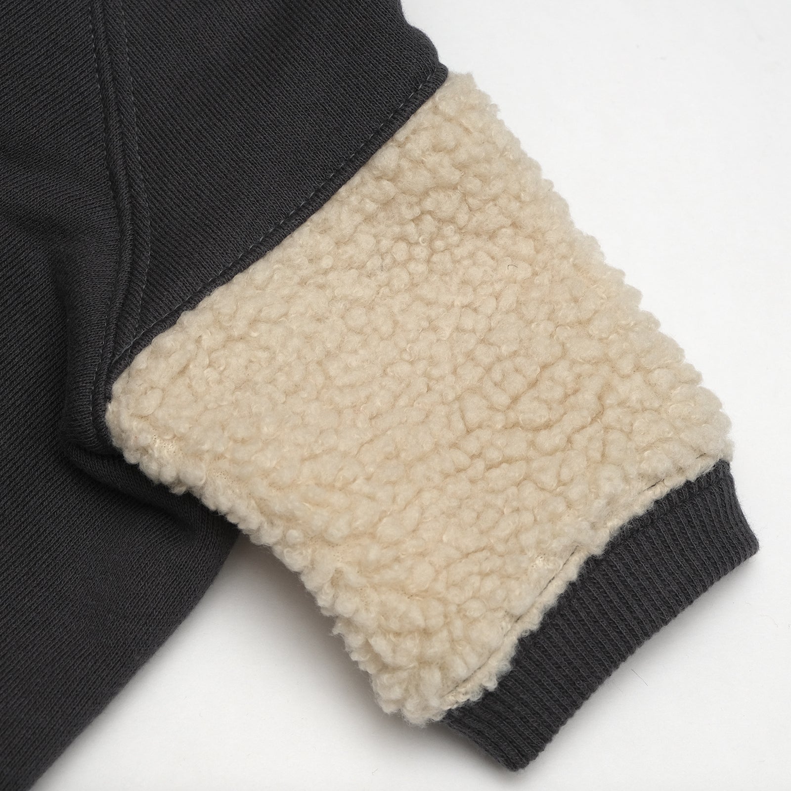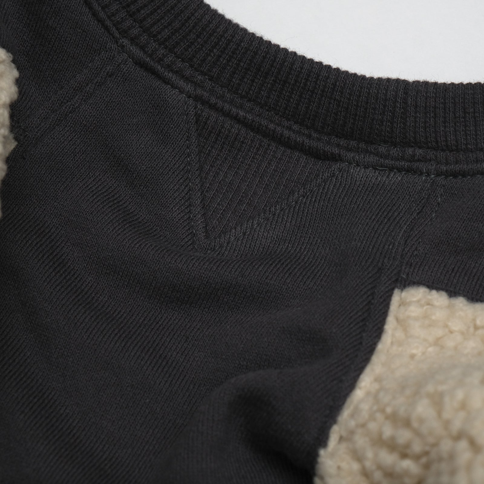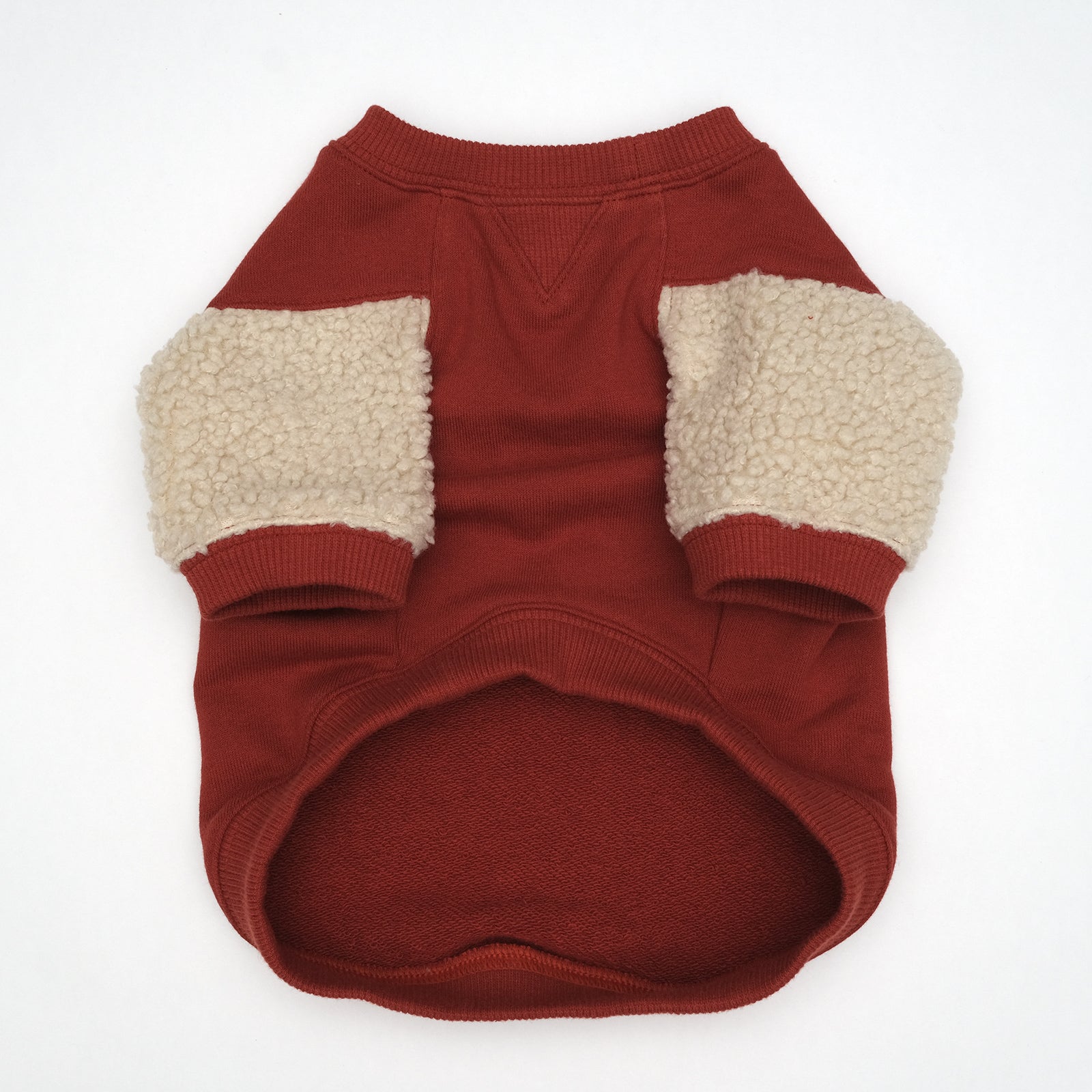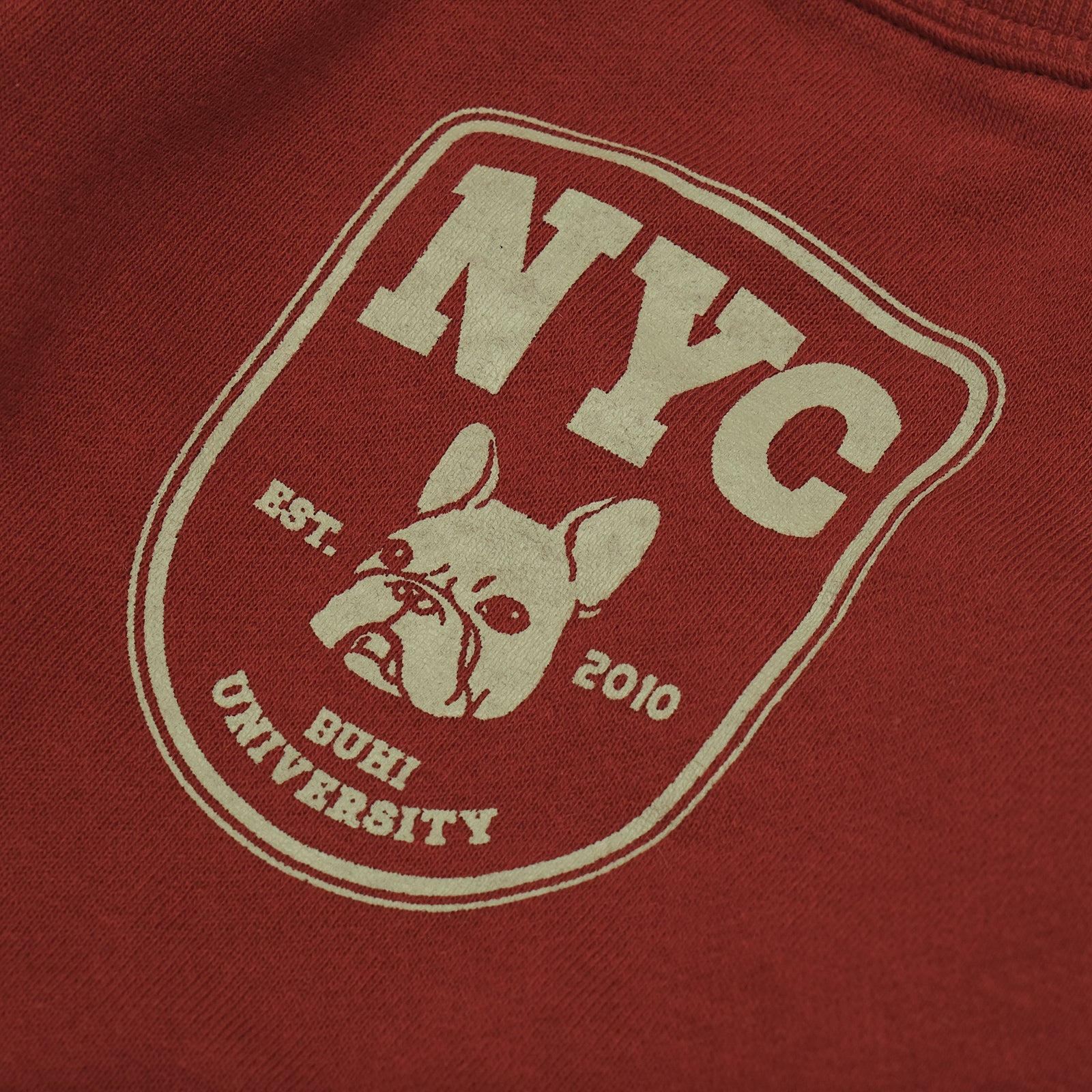希少性の高い「アズマ」の編み機を使用した裏毛です。ゆっくり編み上げることでふっくら柔らかな風合いで、裏のループが綺麗なのが特長です。バックにブヒNYC大学のロゴをプリントしました。フロントにVガゼット、袖をふっくらと柔らかくもこもこなプードルパイルで切替えました。どこから見ても可愛い仕上がりになっています。同じデザインのオーナー用スウェット/フーディ/ブヒ用フーディも用意しました。お揃いコーデもおすすめです。 素材ボディ:コットン100%/パイル:ポリエステル100%モデルサイズ クリーム:首周り 42cm / 胴周り 57cm / 体重 11.5kg / FB-Lサイズ着用フォーン:首周り 43cm / 胴周り 57cm / 体重 10.7kg / FB-Lサイズ着用
